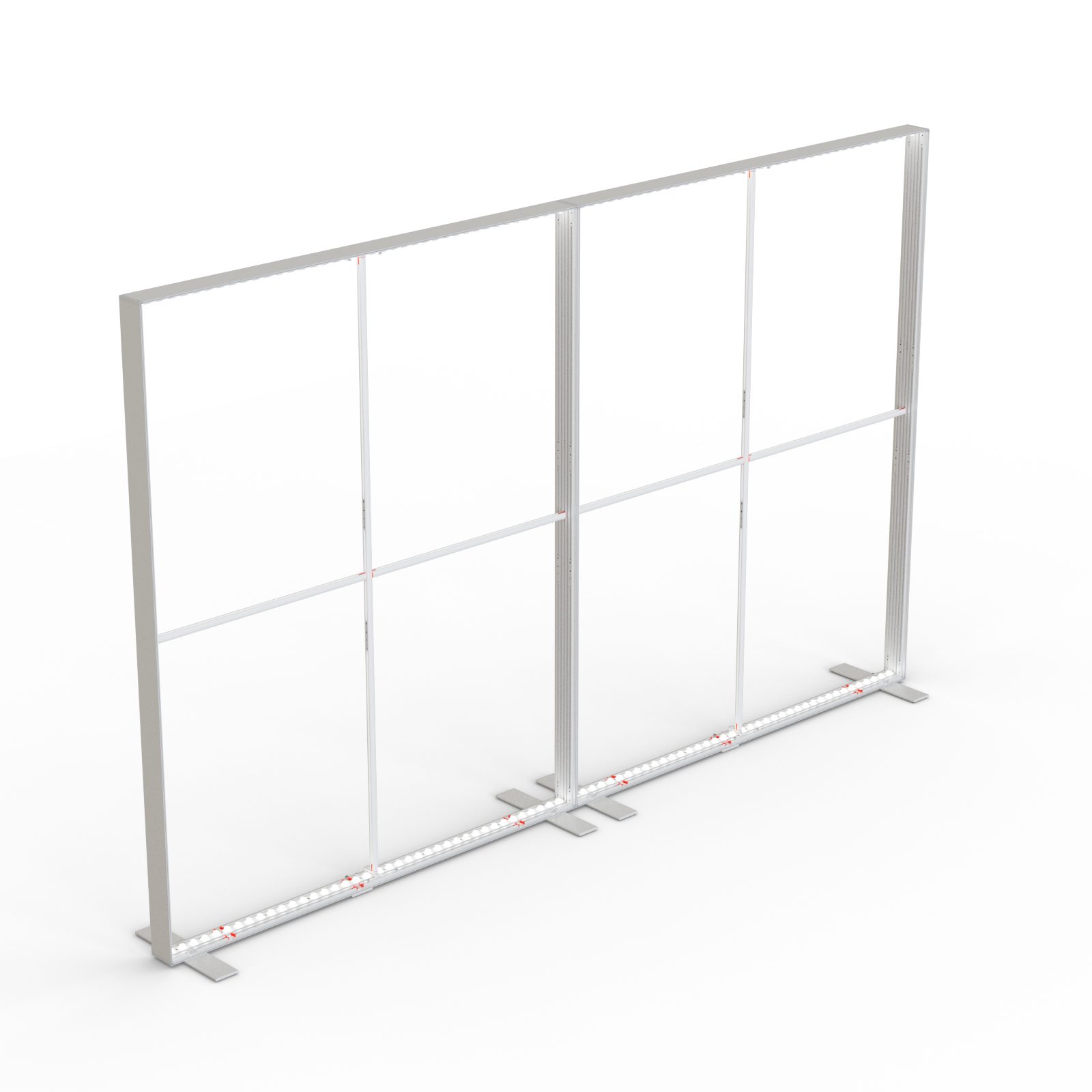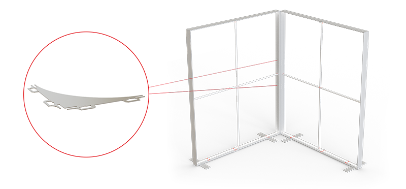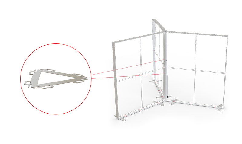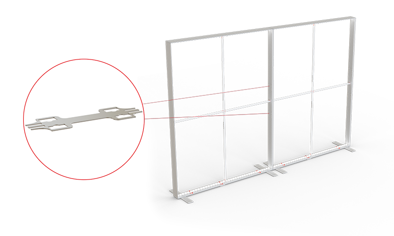 Der gerade Systemverbinder ermöglicht es, mehrere Systeme in kürzester Zeit zu beliebig langen, geraden Wänden zu verbinden. Der Verbinder wird zwischen die vertikalen Systemkomponenten eingesetzt und gewährleistet eine stabile Verbindung zwischen den Systemen.