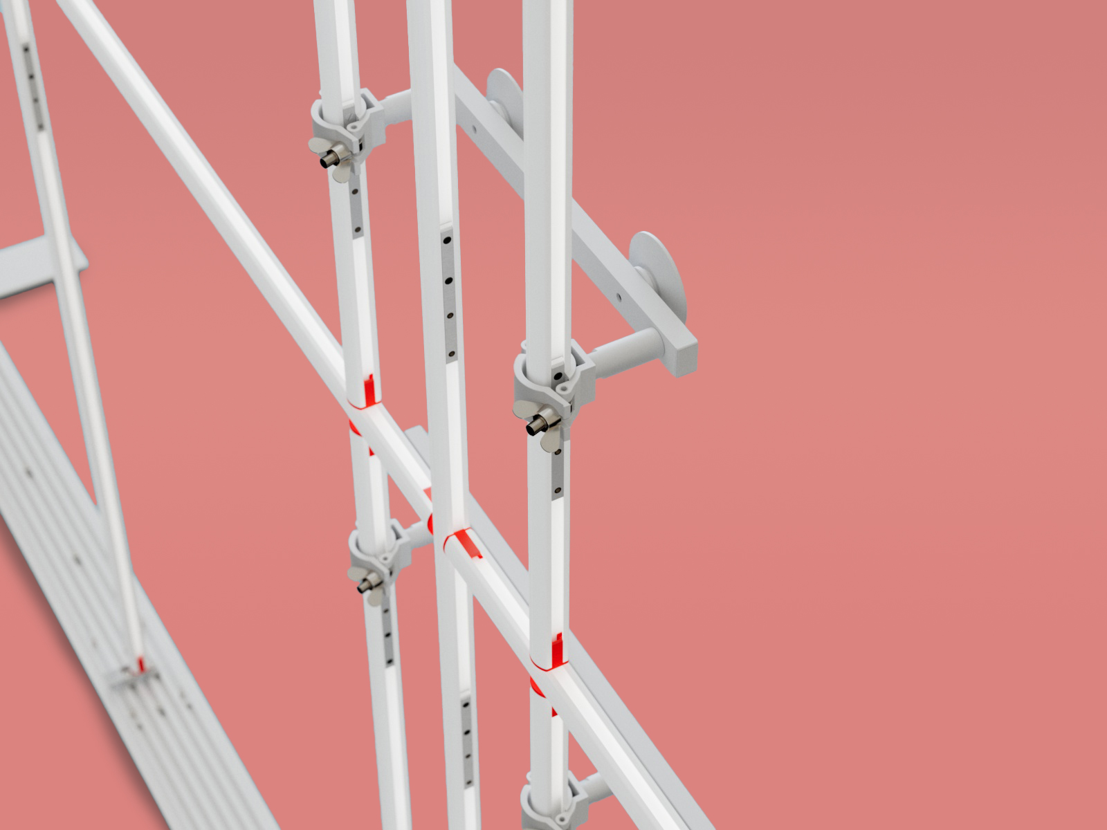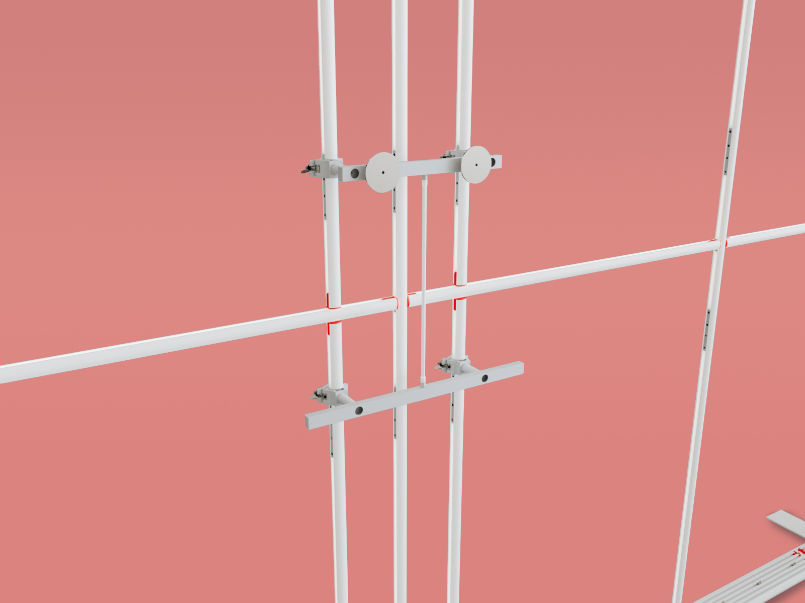 TV Tense fungiert als ergänzendes Stabilisierungselement für TV-Halterungen, insbesondere bei größeren oder schwereren Bildschirmen. Durch die sichere Verbindung mit der Rahmenstruktur und die individuell einstellbare Kabelspannung verhindert TV Tense zuverlässig ein Kippen oder unerwünschte Bewegungen des Monitors. Es sorgt für zusätzliche Standfestigkeit – besonders dann, wenn Displays frei im Raum montiert oder höher positioniert werden. So bleiben auch anspruchsvolle Setups sicher und professionell im Auftritt.