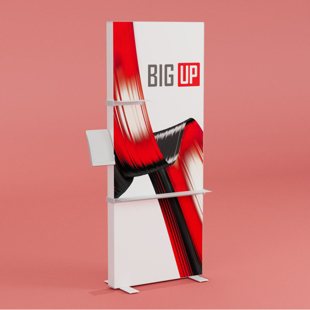 Präsentieren Sie Ihr Produkt in einem revolutionären Displaysystem von höchster Qualität mit BIG UP Stele™. BIG UP Stele™ ist Ihre ideale Wahl, wann und wo auch immer Sie ein wirkungsvolles Display mühelos aufstellen möchten.