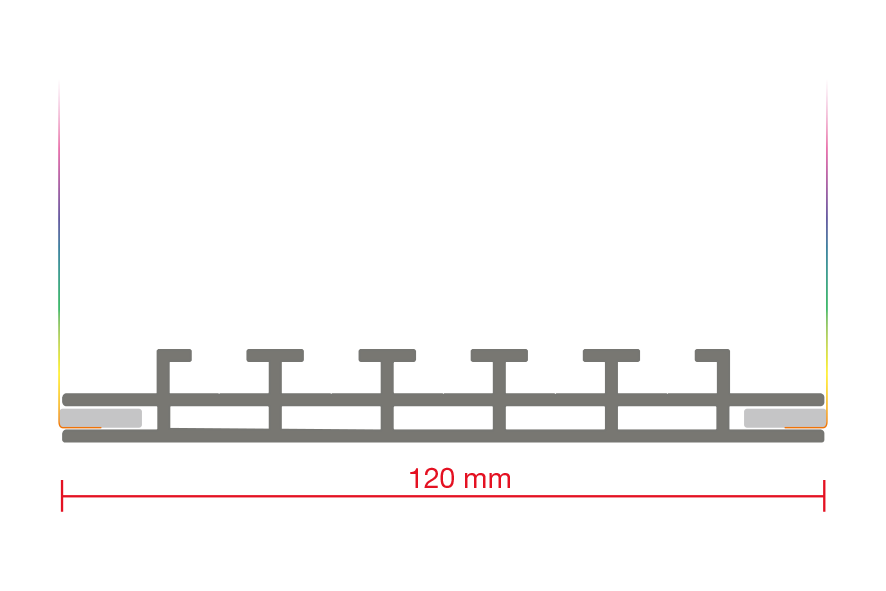 Mit nur 120 mm Systemtiefe entstehen stabile Rahmen in Leichtbauweise aus hochwertigem silber eloxiertem, UV-beständigem Aluminium. Dank besonders sorgfältiger Verarbeitung fühlen sich selbst die Kanten angenehm glatt an.
