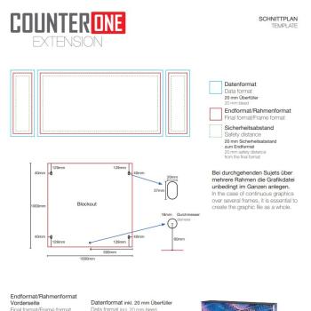 Mit diesem Erweiterungsset können Sie beliebig viele Counter ONE nahtlos miteinander verbinden – und das mit nur einem Frontstoff! Das Ergebnis: Eine durchgängige Grafik mit gleichmäßiger Hinterleuchtung ohne sichtbare Übergänge.