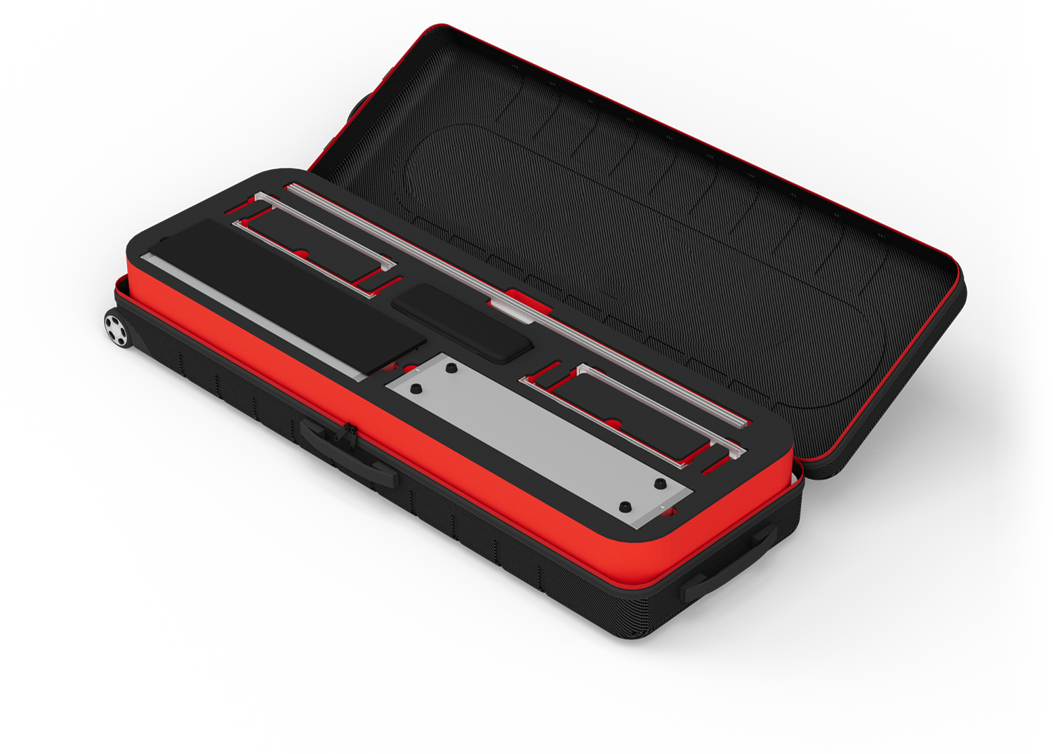 Counter One Mini ist überraschend leicht (23 kg bzw. 28 kg mit Tür) und daher einfach zu transportieren. Er wird in einem robusten ABS-Transportkoffer (119 x 41 x 21cm) geliefert, mit spezieller Schaumstoffauskleidung, Rollen und einem Griff.