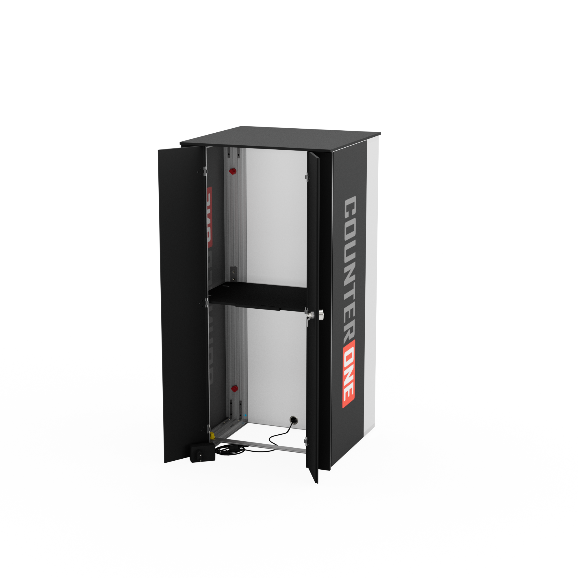 Der Counter One Mini bietet die gleiche hochwertige Optik und Funktionalität wie der originale COUNTER ONE – jedoch im platzsparenden Format. Mit einer beleuchteten Frontfläche von 50 × 100 cm und einer Tiefe von 48 cm ist er ideal für mobile Einsätze. Erhältlich in zwei Varianten: mit rückseitiger Tür für verschließbaren Stauraum oder ohne.