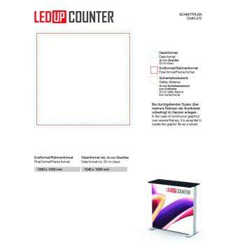 LEDUP Counter ist ein mobiles Thekensystem mit doppelt hinterleuchteten Bildflächen. Hochwertige Aluminiumkomponenten in Kombination mit perfekter LED-Technik garantieren eine absolut gleichmäßige Ausleuchtung und Helligkeit ohne Schattenbildung. Dank des robusten ABS-Transportkoffers ist er zudem sehr leicht zu transportieren.