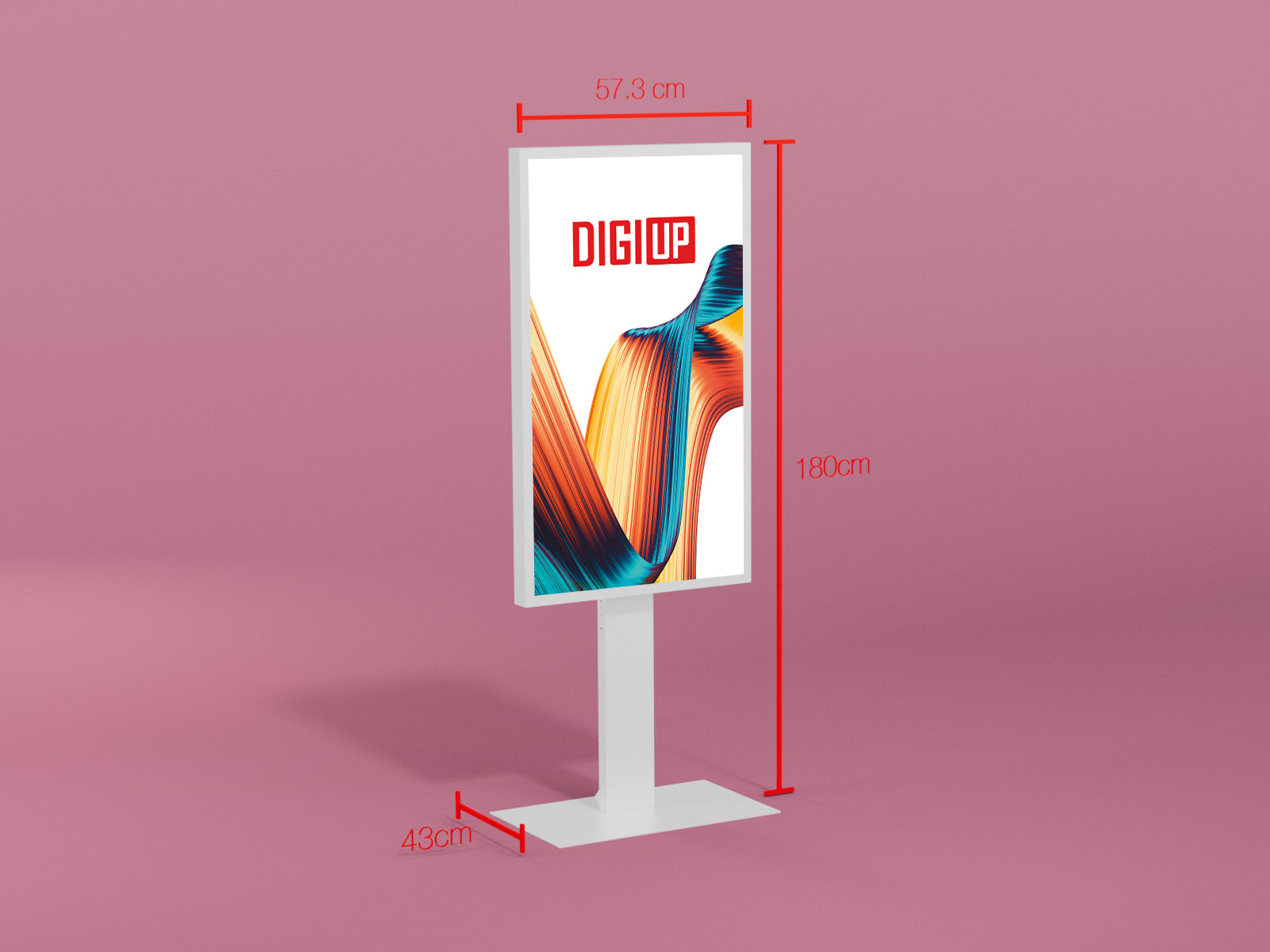 Das Display ist für die Wand- und Standmontage (Standfuß ist als Zubehör erhältlich) geeignet. Seine flache Wandhalterung lässt den Monitor, ohne Abstand zur Wand, wie einen Bilderrahmen erscheinen und ist im Lieferumfang enthalten. Beim Einsatz als Standmodell können Sie den Bildschirm in unterschiedlichen Höhen, in Portrait- oder Landscape-Format anbringen. Der DIGIUP WINDOW ist in den Standardfarben Schwarz oder Weiß erhältlich.