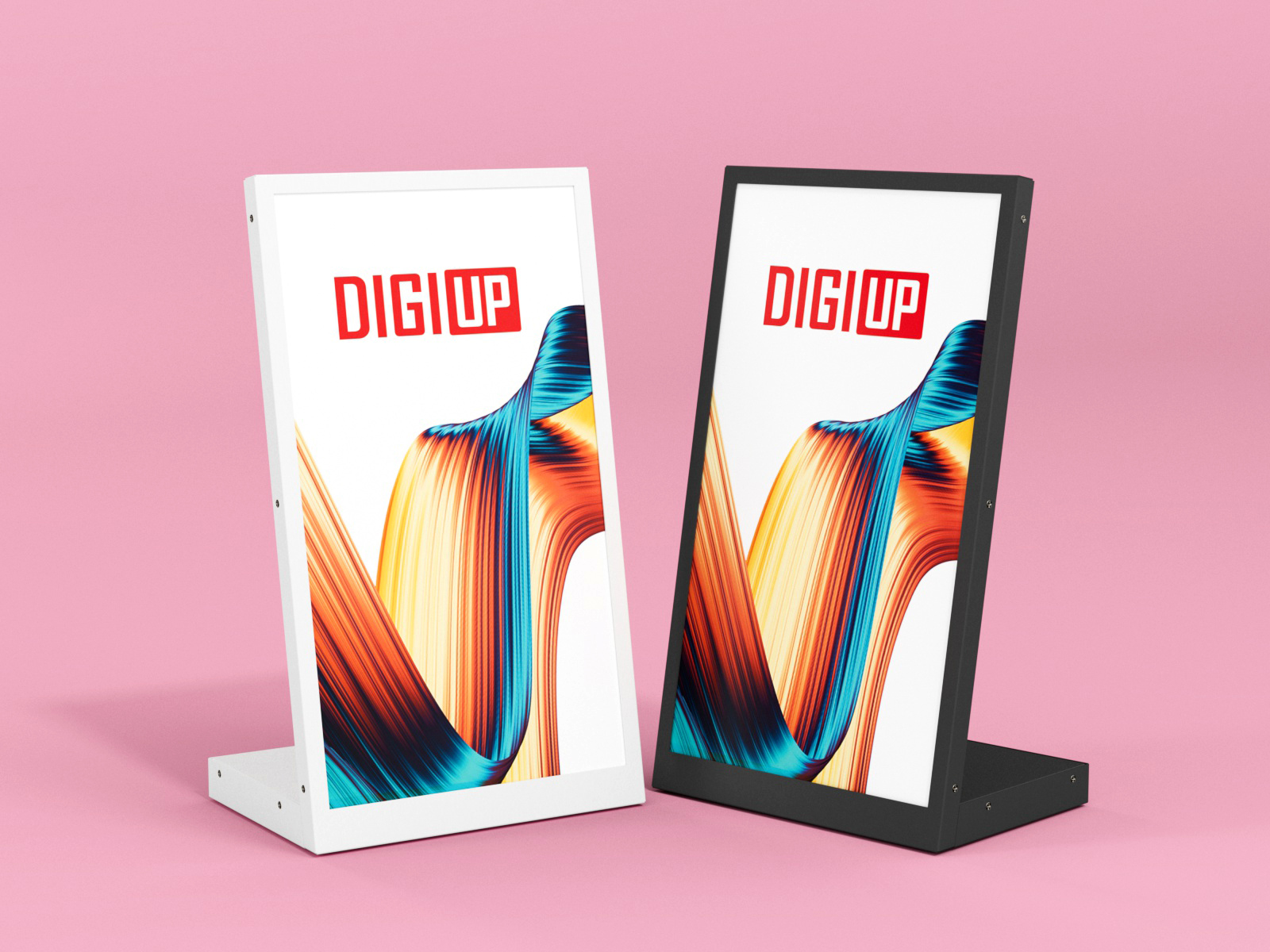 Der DIGIUP Desk kann vielseitig eingesetzt werden, beispielsweise zur Werbung an Schaufenstern, um potenzielle Kunden direkt anzusprechen und Produktneuheiten zu präsentieren. Er eignet sich hervorragend als digitales Menü in Restaurants, um täglich wechselnde Speisen oder Sonderangebote darzustellen. Auf Messen und Events kann der DIGIUP Desk genutzt werden, um Informationen über Produkte, Dienstleistungen oder das Unternehmen ansprechend zu vermitteln. In Empfangsbereichen von Hotels oder Büros dient er zur Begrüßung und Information von Kunden oder Gästen. Auch im Einzelhandel findet der DIGIUP Desk Anwendung, indem er spezielle Angebote oder neue Produkte hervorhebt und somit den Umsatz steigert. Dank der einfachen Aktualisierung des Contents über WLAN, LAN oder ein optionales 4G-Modul ist der DIGIUP Desk flexibel und sofort einsatzbereit.