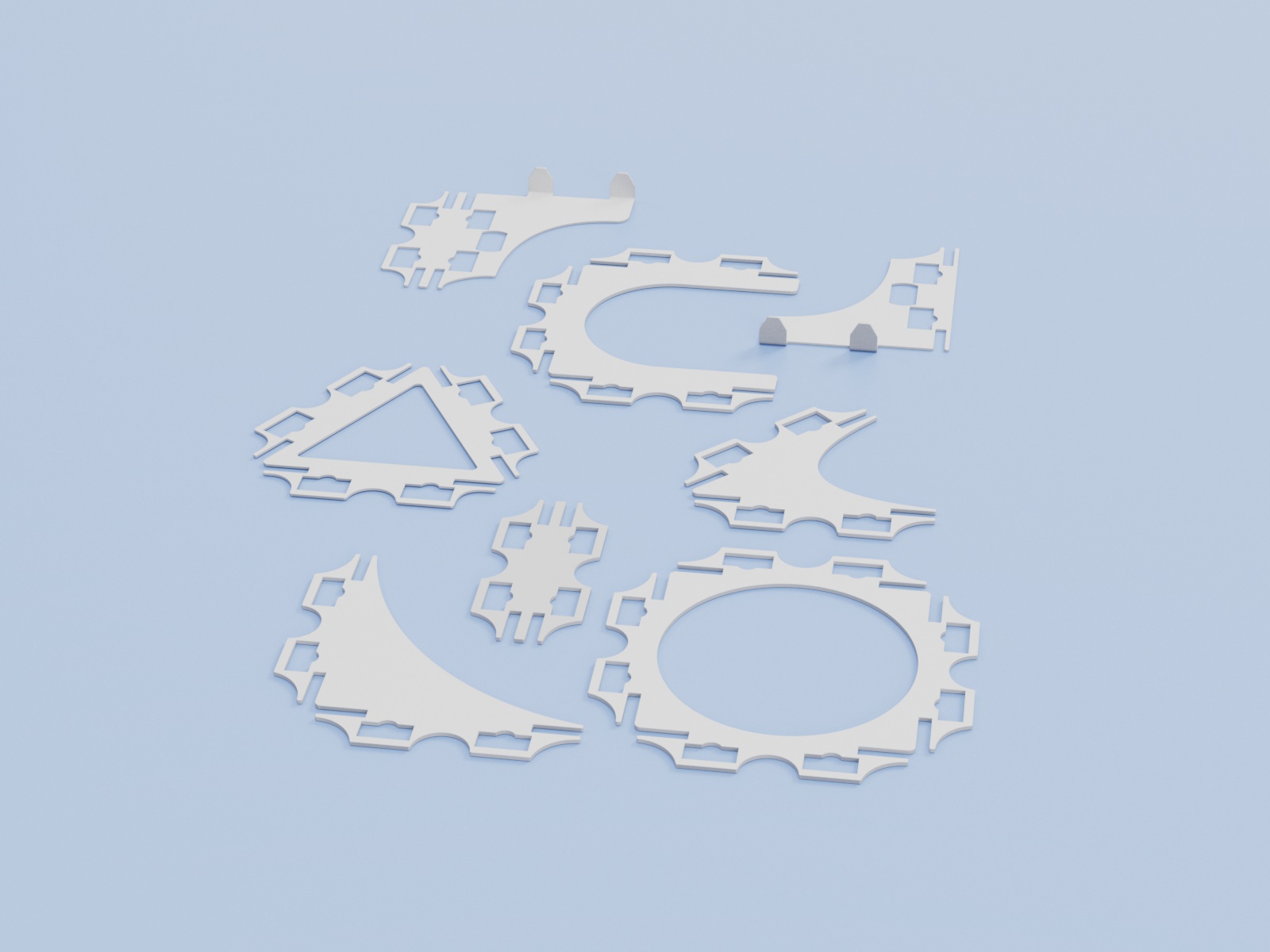 Mit verschiedenen Systemverbindern aus Metall, die zwischen die vertikalen Systembauteile eingesetzt werden, können Sie Rückwände in unterschiedlichen Formen einfach miteinander verbinden. Zudem ermöglichen Ihnen diese Zubehörteile die Realisierung unterschiedlicher Rückwandformen wie beispielsweise L-, U-, T-, Kreuz- oder Sternform.