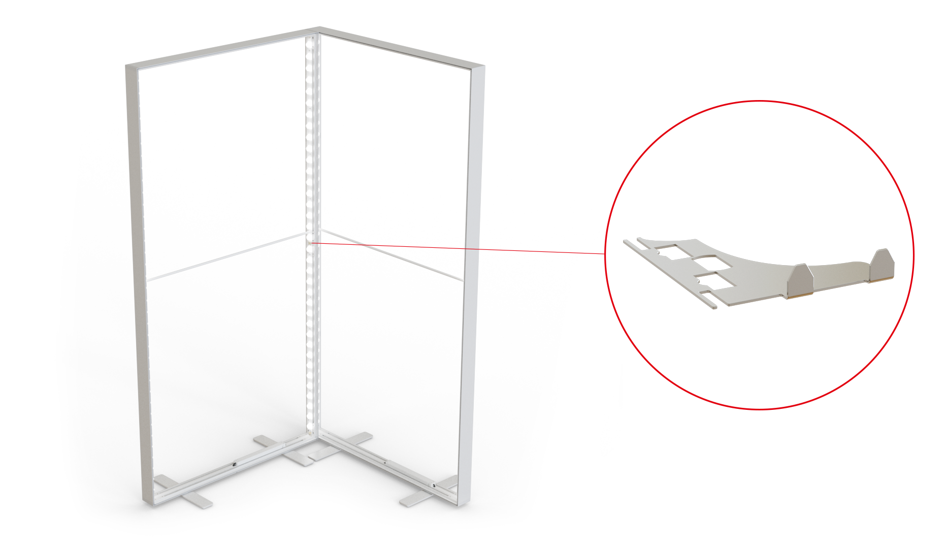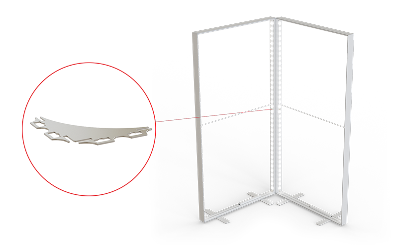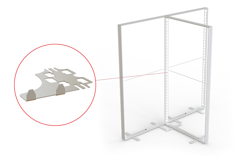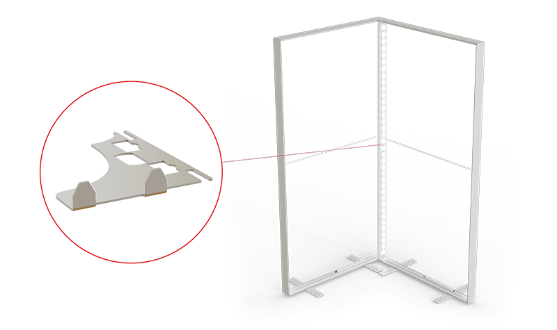 Mit dem 90-Grad-Systemverbinder kann eine stabile Ecklösung geschaffen werden, die das rechte System abdeckt.