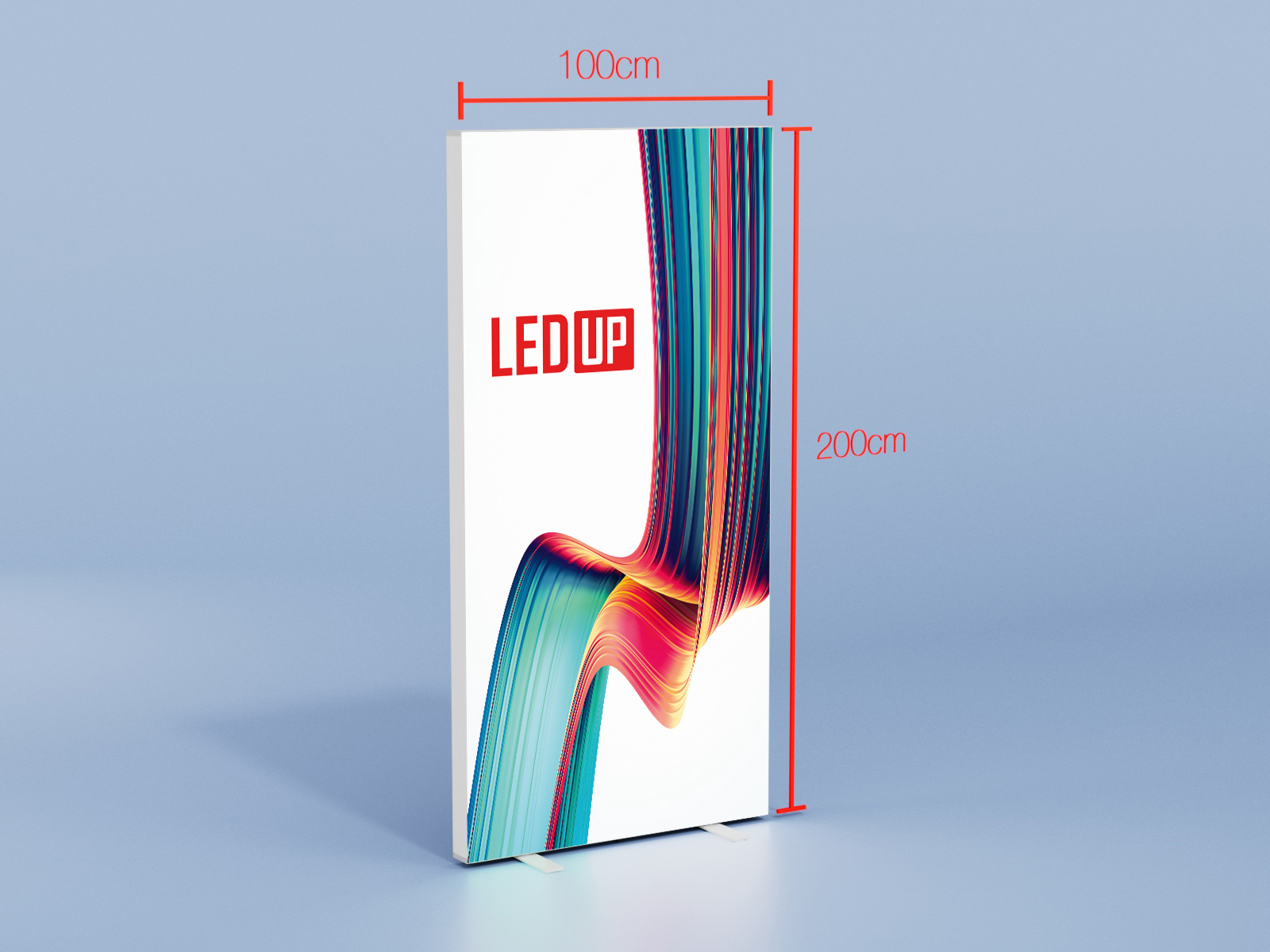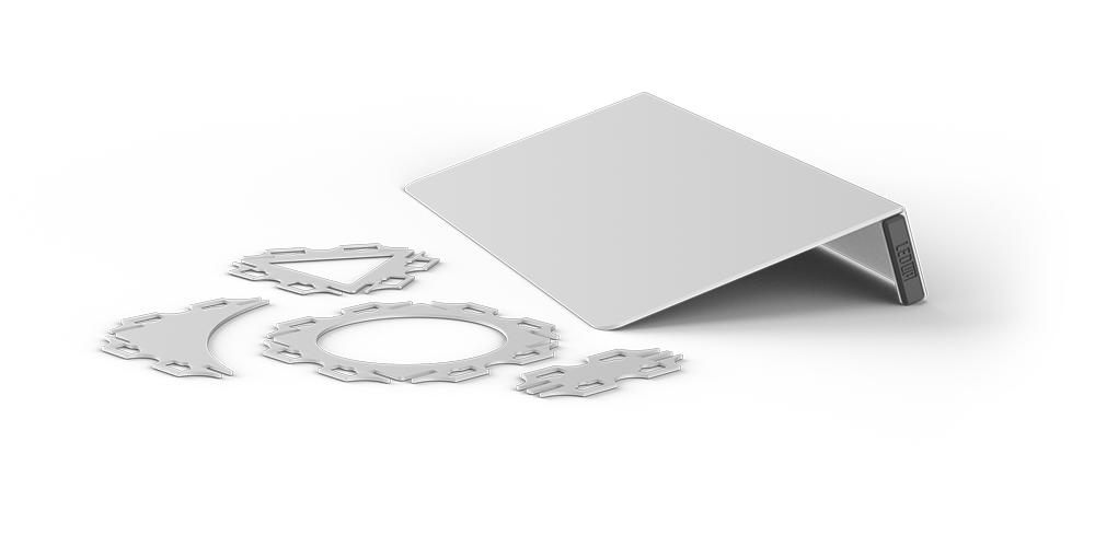 LEDUP® besteht aus nur wenigen Teilen und kann werkzeuglos schnell aufgebaut werden. Beides ermöglicht eine einfache und schnelle Nutzung. Ziehen Sie einfach die Komponenten aus dem Träger, verbinden Sie sie und stellen Sie die vormontierten Basisschienen auf – fertig! Die Silikonlippen-Einfassung ermöglicht eine einfache, faltenfreie Anbringung Ihrer Druckmedien und kann problemlos ausgetauscht werden.