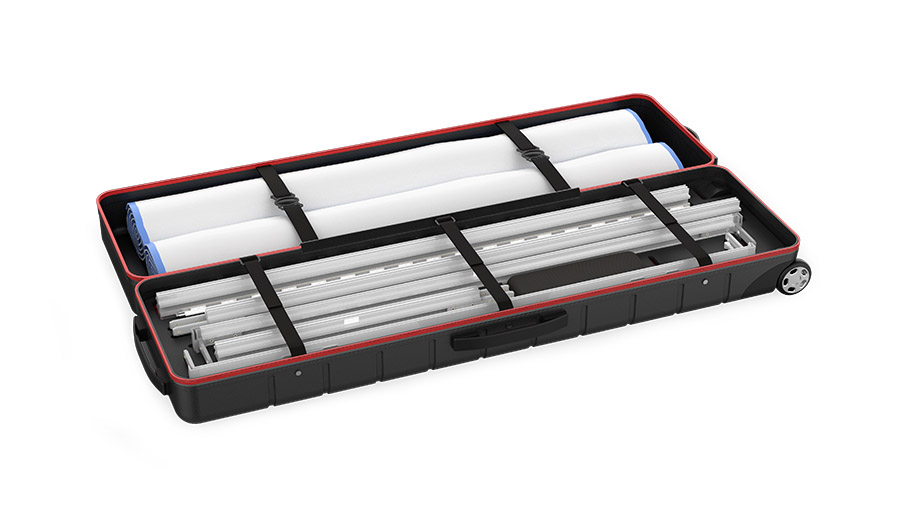 Mit nur wenigen Handgriffen ist ein beeindruckendes Erscheinungsbild garantiert. Das kompakte Design und die preisgekrönte Kartonverpackung bzw. der ABS-Koffer ermöglichen eine optimale Lagerung und den einfachen Transport von sowohl Komponenten als auch Digitaldrucken.