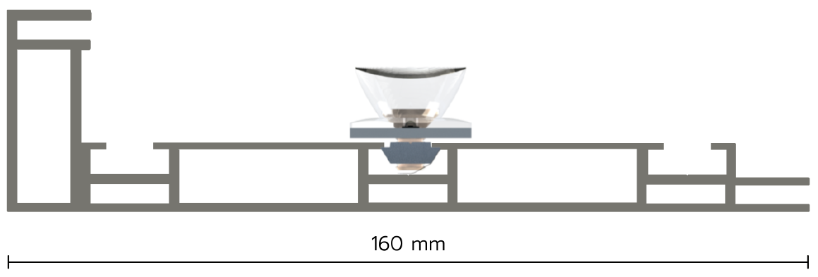Für diesen Displayrahmen wird ein Profil mit einer Profiltiefe von 160 mm verwendet.