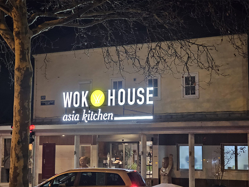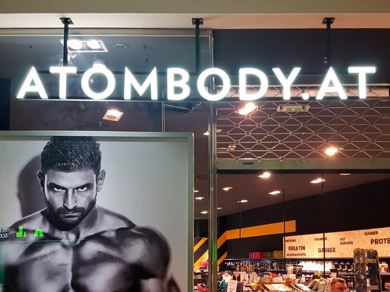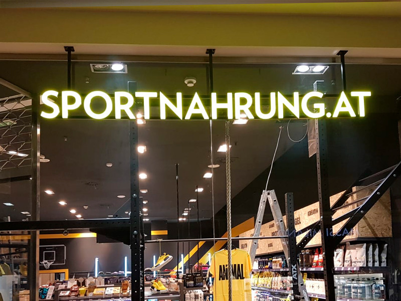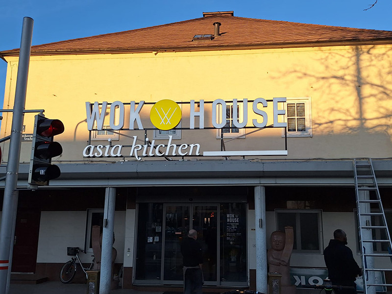 Beleuchtete Werbesysteme bestehend aus einzelnen Buchstaben auf einer vorgefertigten Rohrunterkonstruktion, die zur Installation vormontiert sind. Die Installation kann entweder an der Hausfassade oder auf dem Dach erfolgen (entsprechende Dachverbindung gemäß statischen Anforderungen).