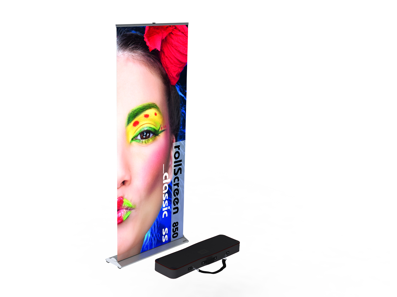 Der Roll Screen Classic bietet eine elegante und langlebige Möglichkeit, Banner zu präsentieren. Verwenden Sie ihn für Ihre POS-Präsentation, als Showroom-Dekoration, auf Messen und Ausstellungen oder für jede andere Präsentation oder Werbeaktivität, die Sie durchführen möchten.