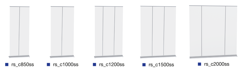 Der Roll Screen Classic ist in einer Höhe von 221 cm und in fünf Breiten erhältlich: 85, 100, 120, 150 und 200 cm. Gewicht: 6,5 – 14 kg.