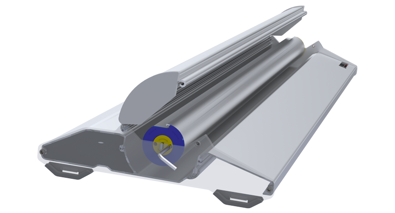 Das Wechseln der Grafikpaneele bei den Roll Screen Classic Displays ist einfach. Sperren Sie zunächst die Feder mit dem im Display enthaltenen Inbusschlüssel. Lösen Sie dann die beiden Schrauben am Deckel, um Zugang zu erhalten und das Grafikpaneel und/oder die Rollkassette zu wechseln. Schließen Sie zum Schluss den Deckel, sichern Sie ihn mit den zwei Schrauben und lösen Sie die Kassette, indem Sie den Inbusschlüssel herausziehen.
