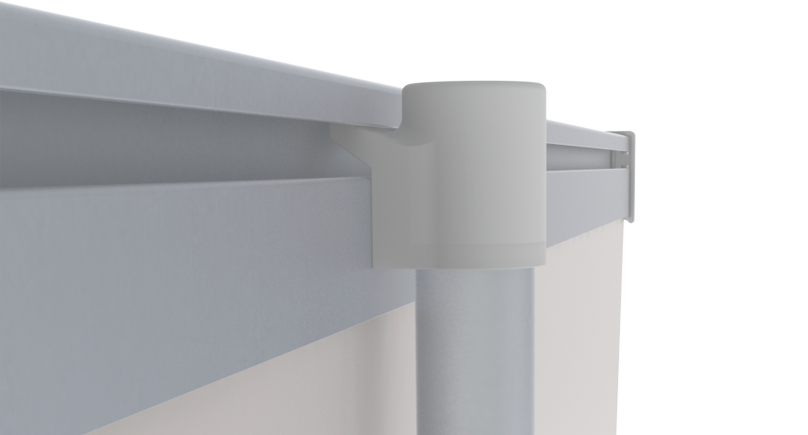 Ziehen Sie das Panel aus der Kassette – befestigen Sie es an der Stange – Stange einsetzen – fertig. Endkappen für das obere Profil sind im Lieferumfang enthalten.