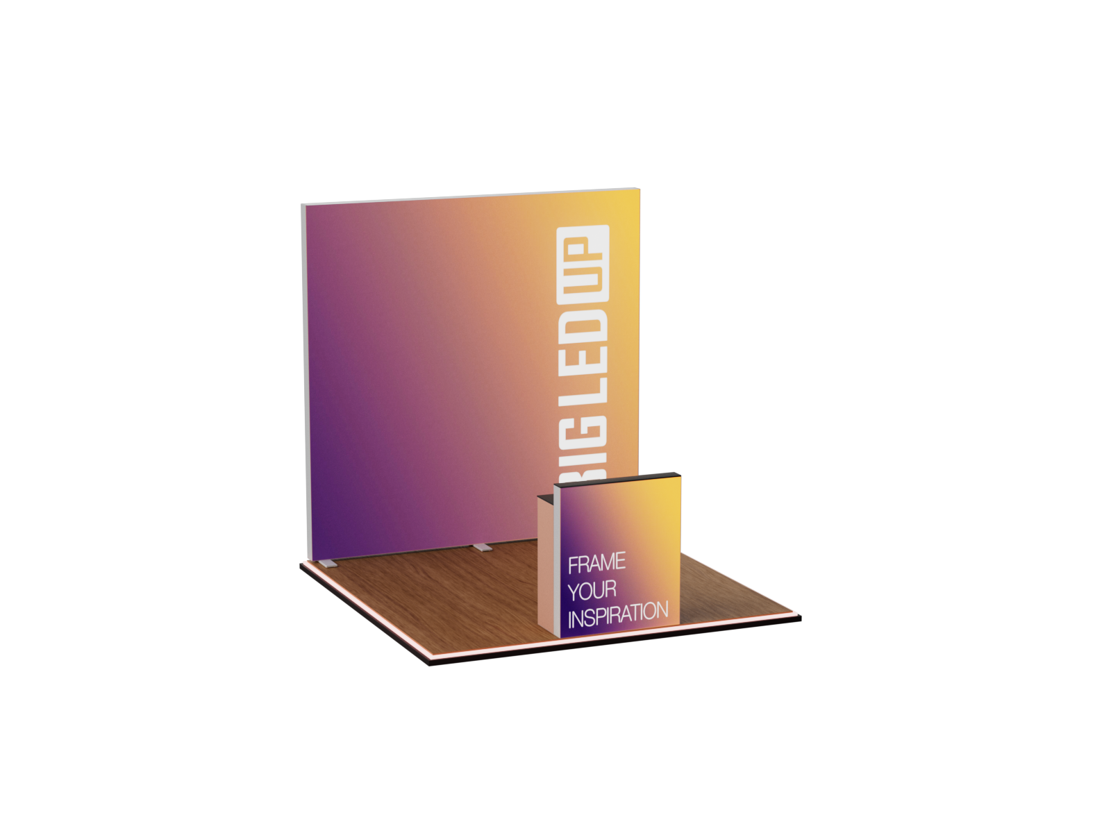 Dieses Set ist mit einer Grundfläche von 3x3 m und einer Höhe von 248 cm, sowie einem Counter MAX, eine kompakte Lösung für eine wirkungsvolle Präsentation.
