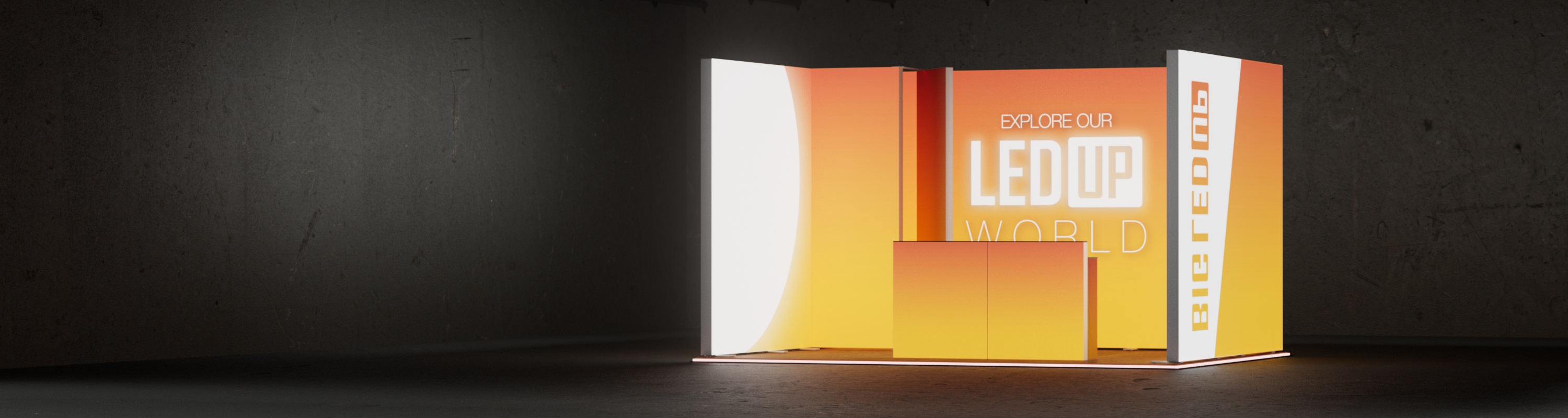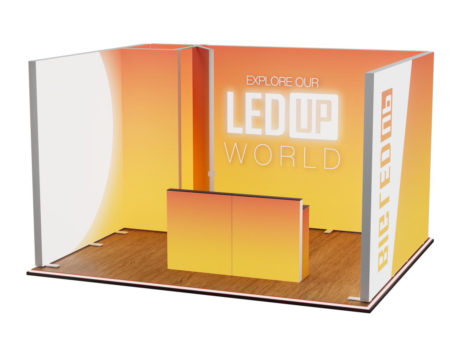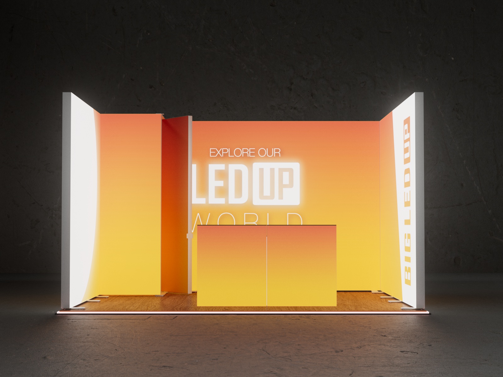 Dieses Set ist mit einer Grundfläche von 5x4 m und einer Höhe von 298 cm, sowie zwei Counter MAX und einer Koje, ist die für diejenigen gedacht, die einen beeindruckenden und professionellen Messestand benötigen. Dieses modulare Set bietet maximale Flexibilität und ermöglicht es Ihnen, den Aufbau an Ihre spezifischen Event-Anforderungen anzupassen. Ob für Messen, Konferenzen oder jede andere Promotion-Veranstaltung – das BIG LEDUP Set 5x3 LENNON sorgt dafür, dass Ihre Marke durch Klarheit und Stil hervorsticht.